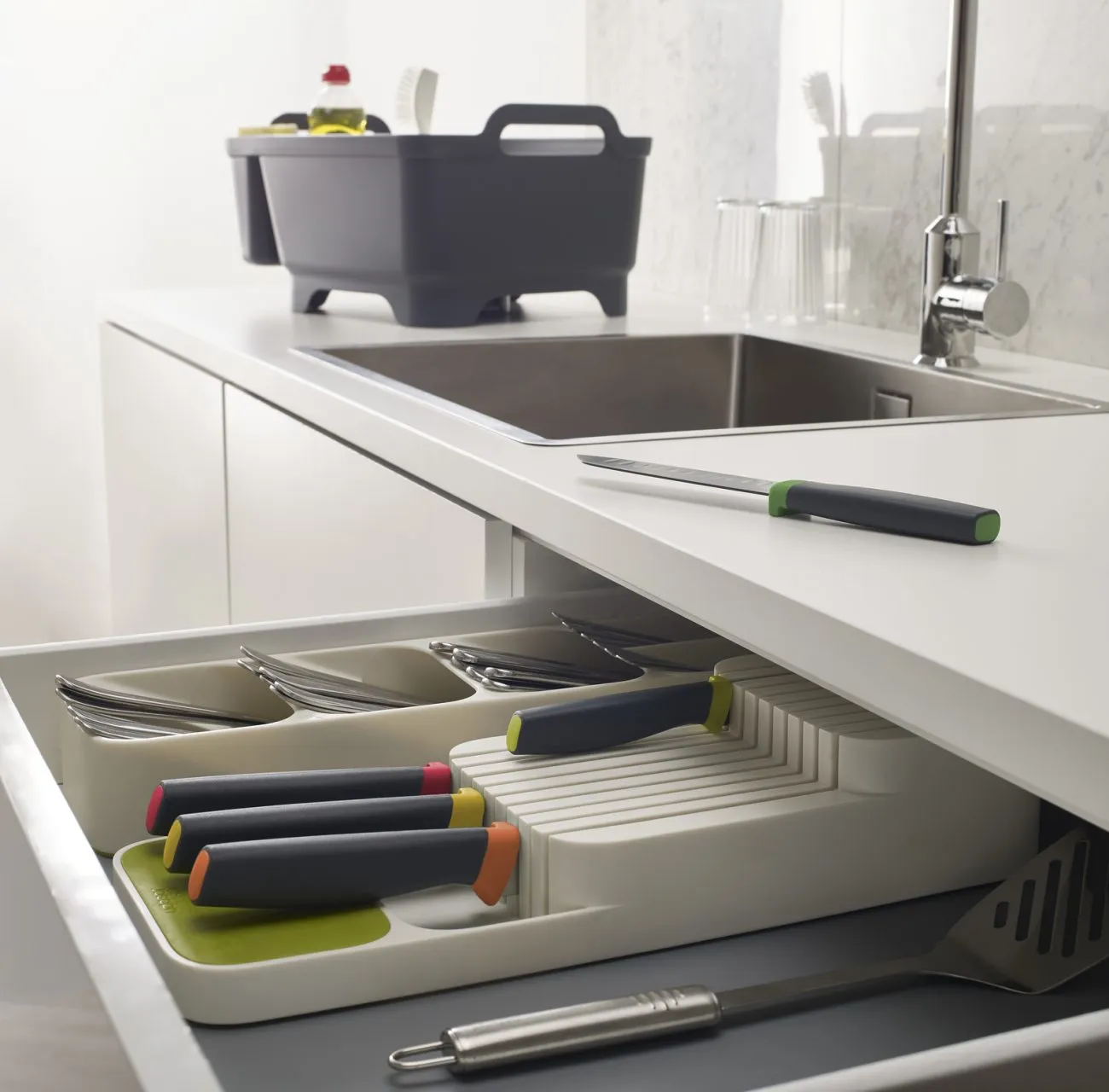 DrawerStore Compact 2-tier Knife Organiser – White/Green
