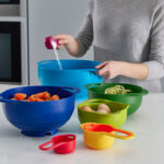 The set includes eight thoughtfully designed pieces to meet a full range of prep needs: a large mixing bowl (4.5 litres), colander (3 litres), medium mixing bowl (1.65 litres), small mixing bowl (0.5 litres), and four snap-together measuring cups ranging from 60ml to 250ml. Each piece is optimized for daily use, offering unmatched versatility in baking, cooking, or portioning.