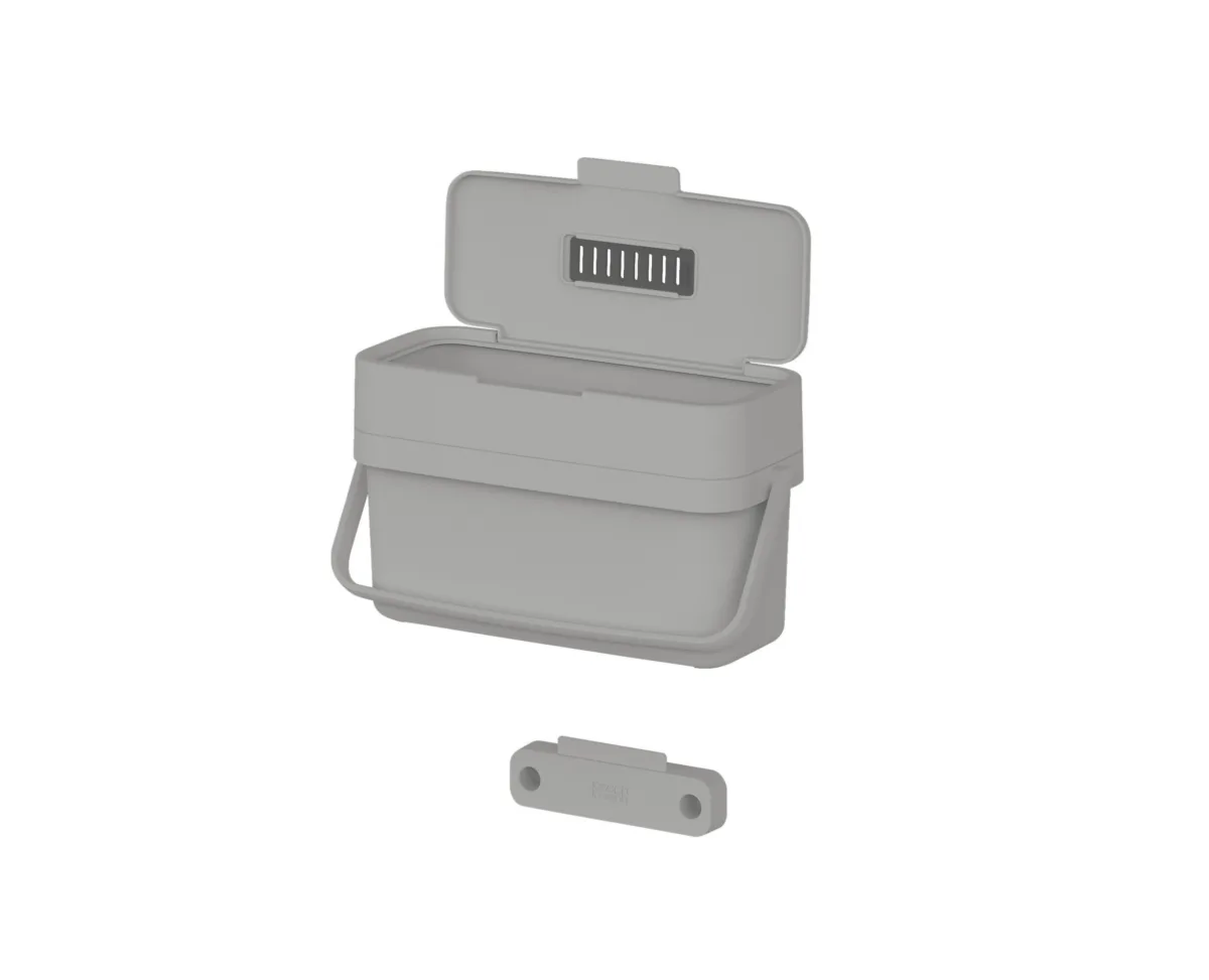 This slimline food waste caddy has been specifically designed to make collecting food scraps easier. It features a convenient flip-up lid and an extra-wide aperture, ideal for capturing food waste scraped directly from plates. An adjustable air vent in the lid can be opened to allow moisture to escape – thereby reducing odour build up – or closed to provide a barrier to insects in hotter climates. The slender design is perfect for storing on the worktop or inside a cupboard and it comes with its own bracket for mounting on a cupboard door. Suitable for use with Joseph Joseph IW2 custom-fit compostable liners.Wide aperture makes scraping food from plates easierAdjustable air vent: Open – helps reduce moisture and odour build-up; Closed – provides insect barrierSlimline design perfect for storing on the worktop or inside cupboardsDoor-mounting bracket includedCapacity: 4 litres