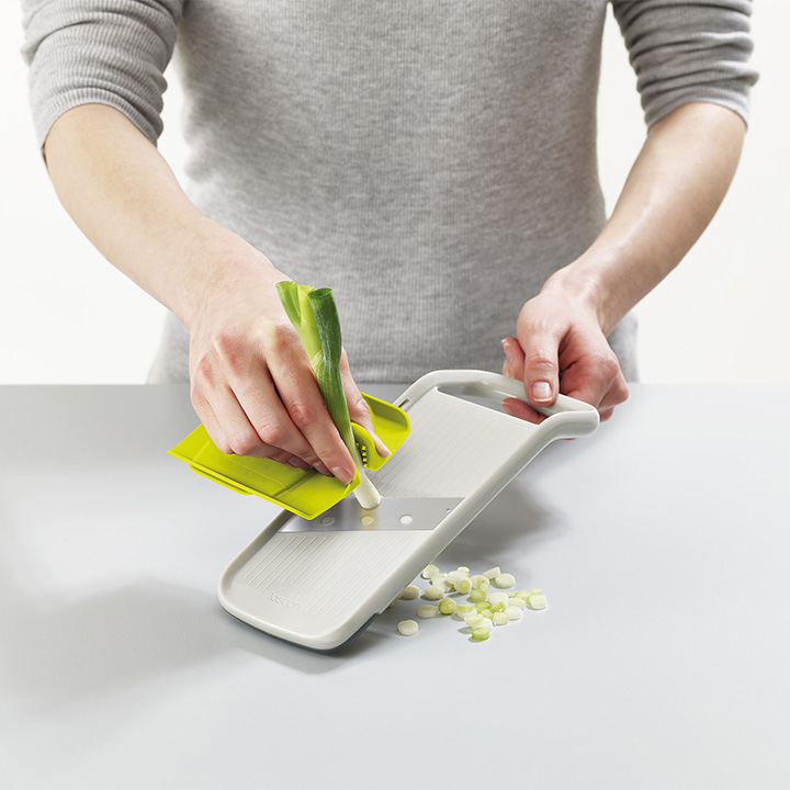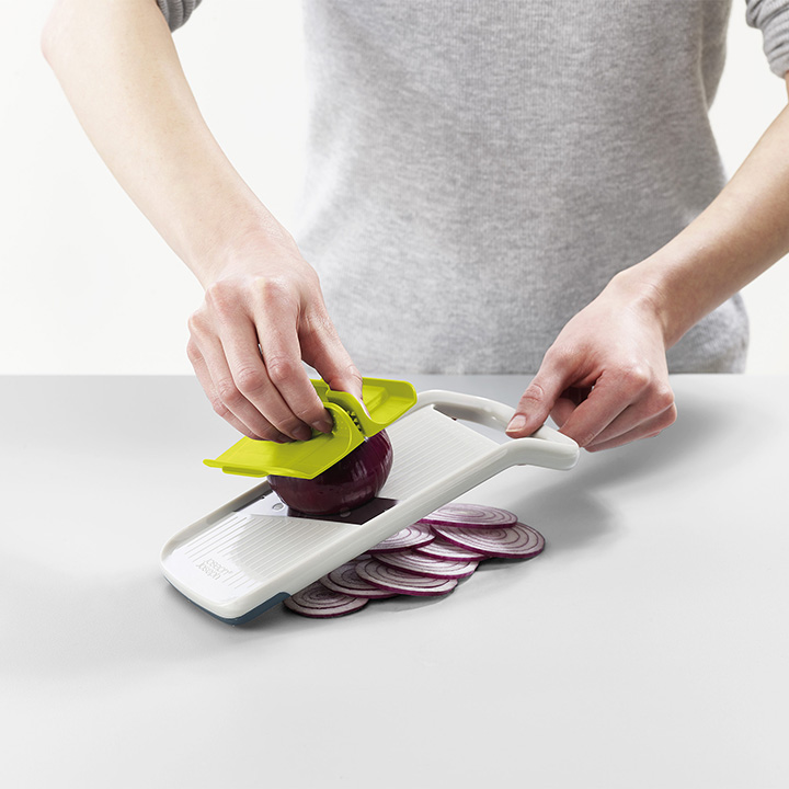 Unlike conventional slicers, the Joseph Joseph Duo Mandoline features a three-in-one precision food grip system. Each style is thoughtfully engineered to adapt to the shape and size of different ingredients:
