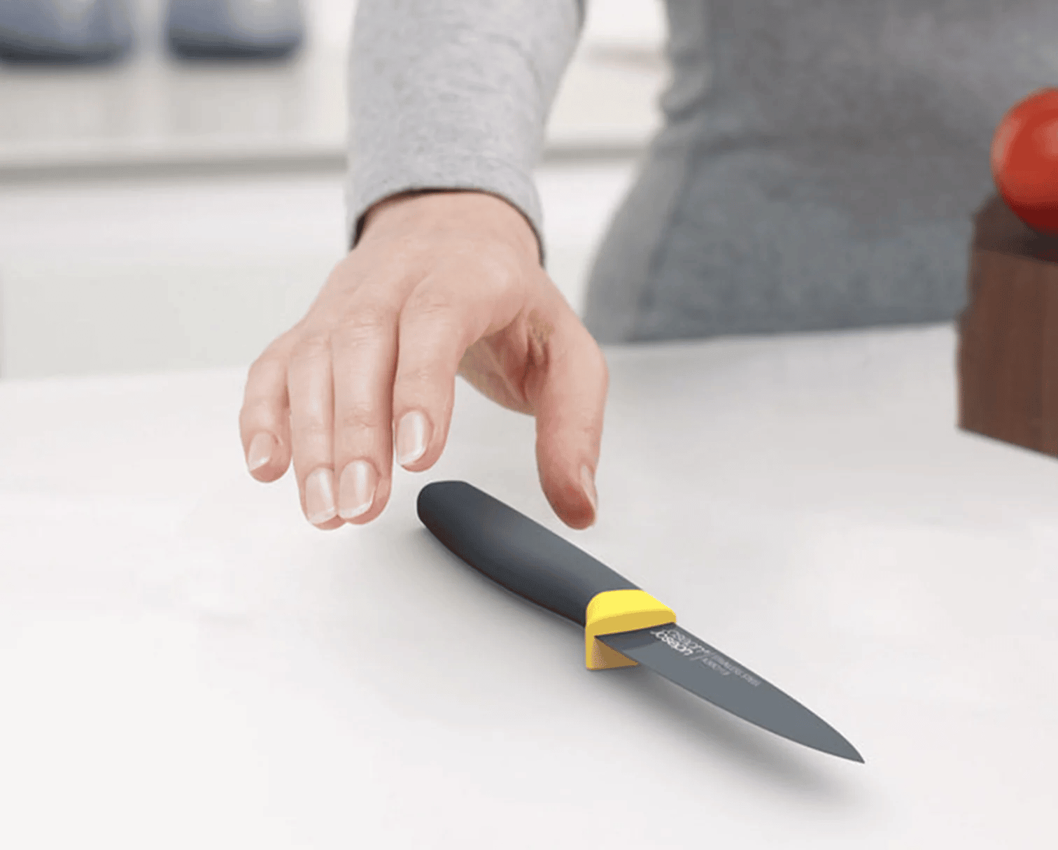 Enter the Elevate™ Knives – Multicolour, a trio of essential blades engineered to combat these everyday friction points. Featuring weighted handles with integrated elevated rests, each knife’s blade remains raised when placed down, keeping surfaces clean and edges safer. This forward-thinking design reduces contact with countertops, enhances food hygiene, and streamlines your workspace for a cleaner, more intuitive cooking flow.