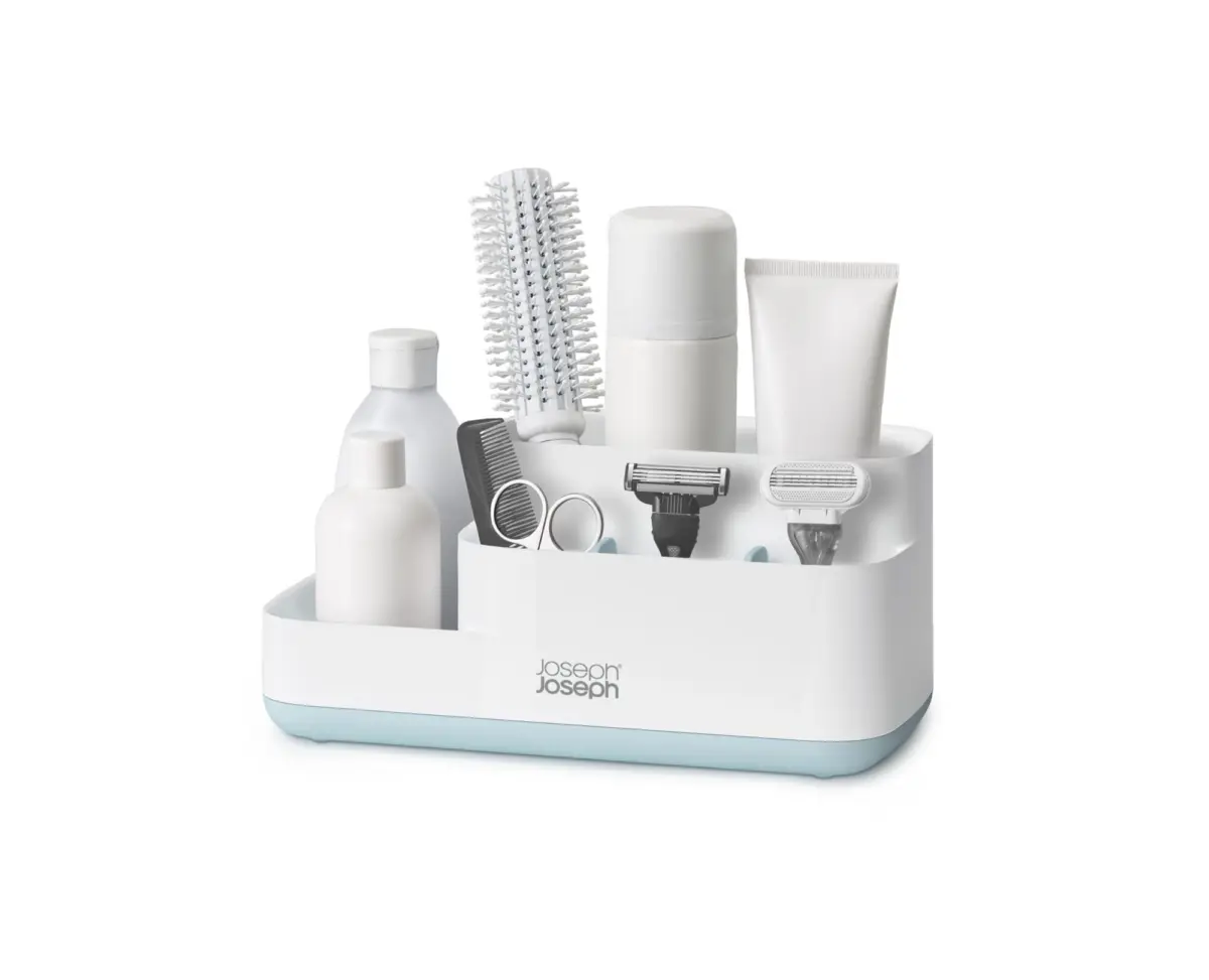 The combination of blue and white tones brings a clean, calming aesthetic to the room, blending seamlessly into both modern and traditional bathroom styles. Whether you’re getting ready for a big meeting or winding down after a long day, this caddy supports your rhythm, keeping everything visible, upright, and accessible.