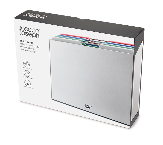 Keep your kitchen organized, stylish, and safe with the Joseph Joseph Folio 4 piece Chopping Board.