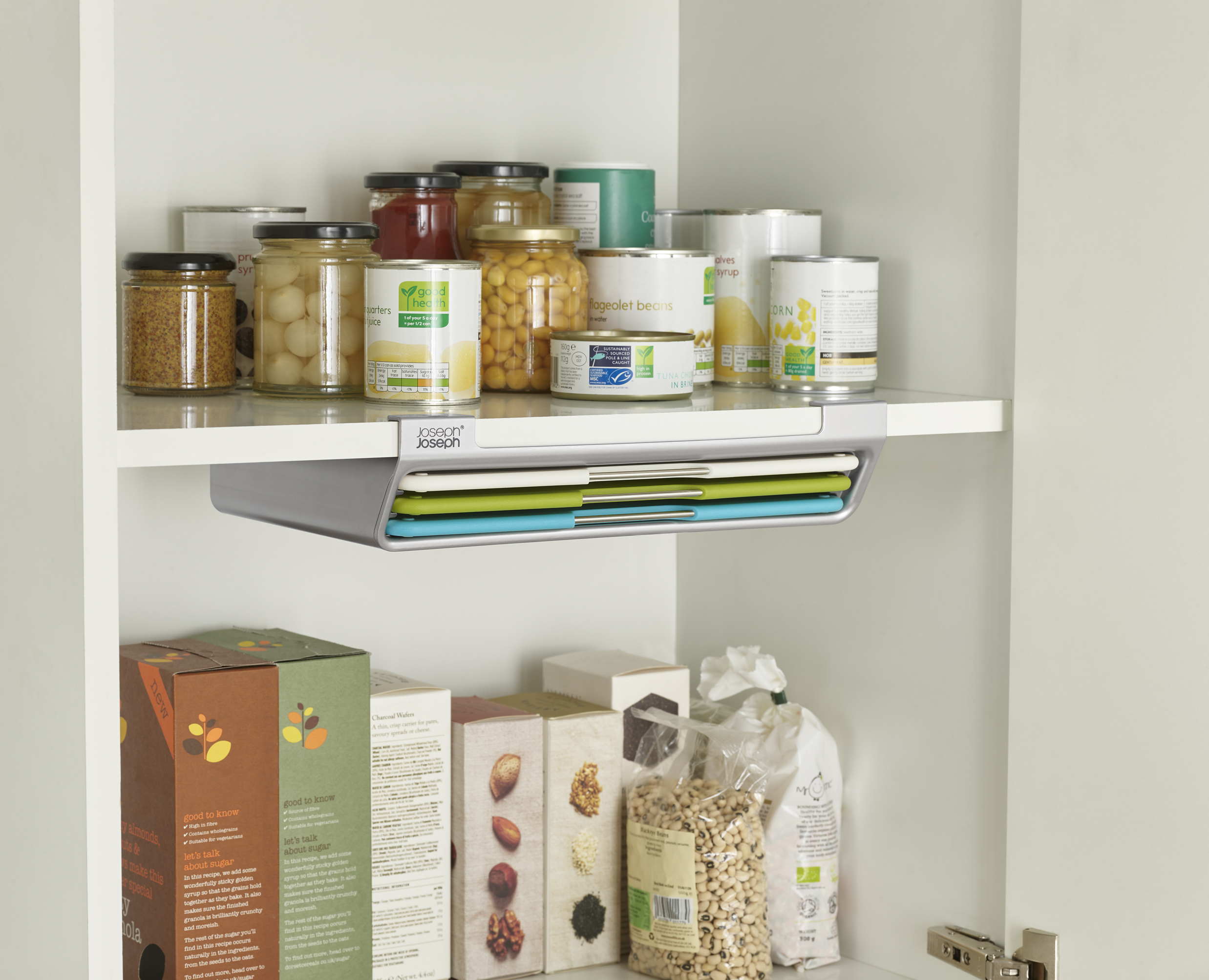 At the heart of this solution lies a slimline storage case that hooks neatly onto your existing shelf and is secured at the back with discreet screws—both strong and subtle. This under-shelf mounting mechanism means your chopping boards are always within reach but never in the way. The set’s tiered design makes it easy to identify and grab the board you need without fumbling or shifting others.