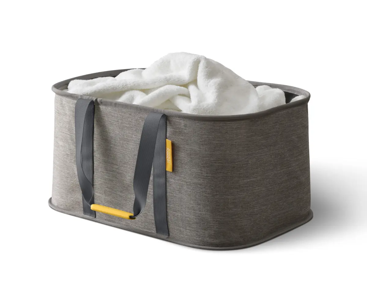 With a maximum load of 9 kg (19.8 lbs) and a 35-litre capacity, the Hold-All basket is designed for performance without compromise. It’s large enough for full loads but compact in its folded form. To maintain optimal performance, users should refer to the care label inside and avoid exceeding the load limit. Because of its fabric design, it’s not meant for transporting sharp objects or chemicals—but for laundry, towels, linens, or kids’ clothing, it’s perfectly equipped for everyday use.