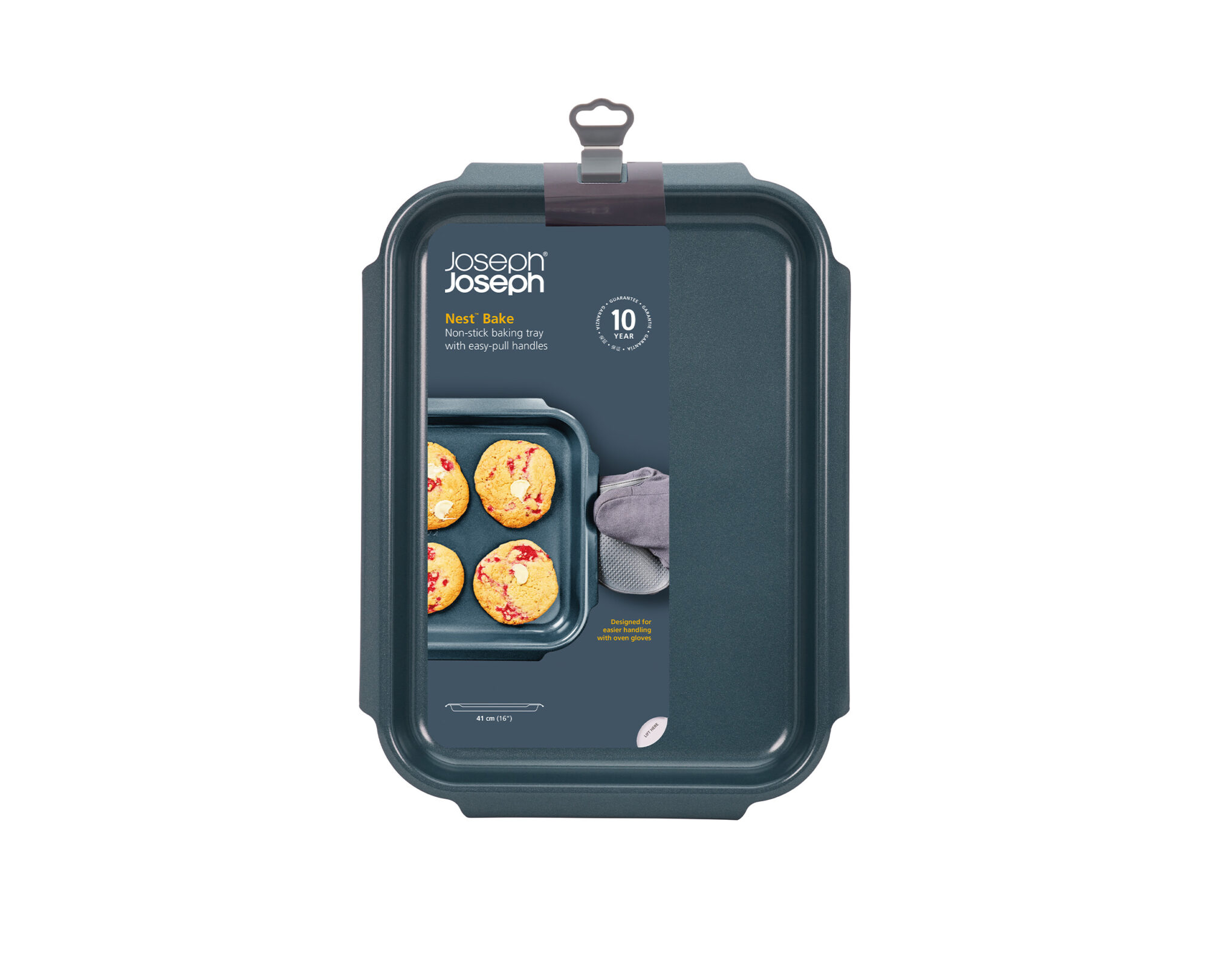 The Joseph Joseph Nest™ Bake Large Non-Stick Baking Tray offers a space-saving, stackable design perfect for compact kitchens. Crafted from heavy-gauge carbon steel, it ensures excellent durability and even heat distribution. The dual-layer non-stick coating is free from PTFE, PFAS, PFOA, lead, and cadmium, providing easy food release and effortless cleaning. Featuring easy-pull handles on the sides, it provides a safe and secure grip even when wearing oven gloves. Its nesting design allows for compact storage and airflow to prevent scratching. Oven safe up to 232°C, this baking tray is a smart and reliable choice for every home baker.