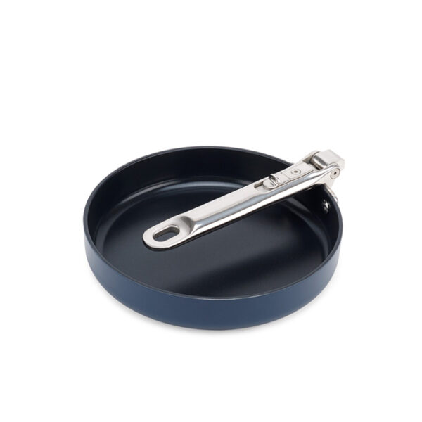 The patented SwingLock™ folding handle system, combined with ergonomic heat-resistant grips, ensures safe handling and compact storage. Its eco-conscious materials, including recyclable aluminium and a toxin-free ceramic surface, reduce waste while promoting long-term value.