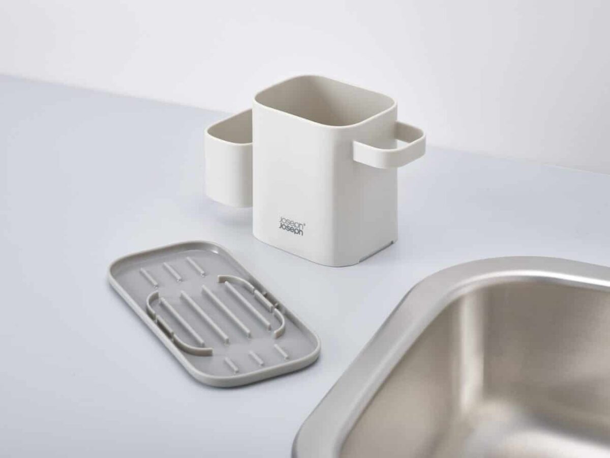 Keep your kitchen sink tidy, hygienic, and visually pleasing with this compact sink organizer with sponge holder by Joseph Joseph. Designed to dry quickly and clean easily, it’s your secret to an organized countertop.