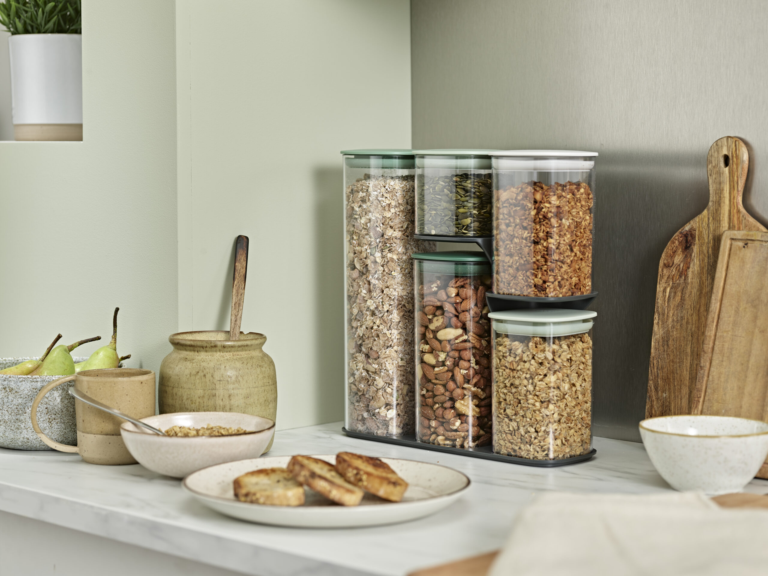 Part of the Editions range, this Podium™ set is finished in Sage, a soft, organic hue inspired by herb gardens and natural stone textures. Blending beautifully into both contemporary and rustic kitchens, the neutral-green tones bring a sense of calm and cohesion to countertop storage. It’s a practical system that also serves as a design accent, enhancing the look of your kitchen while organizing its contents. Whether displayed on open shelves or nestled beside your prep area, this set turns dry food storage into a visual feature.