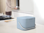 With a sturdy stainless-steel carry handle, the caddy can be lifted and emptied with ease—even full liners. Its compact design fits neatly on any countertop, sits seamlessly inside larger Stack recycling units, or can be transferred to a compost bin or outdoor container. The tidy size, combined with thoughtful design details, makes it a versatile addition to any kitchen.