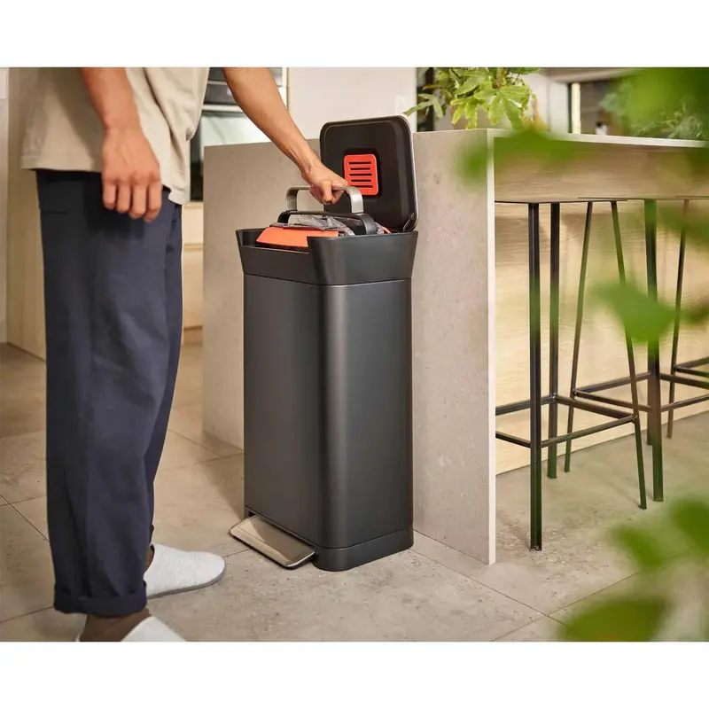 Tired of taking out the rubbish? Meet Titan, the steel trash compactor that cuts down on time spent emptying the bin. Titan features a hygienic compaction handle that pushes down into the bin to crush waste, which means it can hold up to three times more than a similar-sized bin. What’s more, you can compact with confidence as it has an anti-tear design that won’t stretch or pinch the liner. Not only does it mean less trips outside, but you’ll also use fewer bin liners and you don’t need to touch messy waste with your hands.