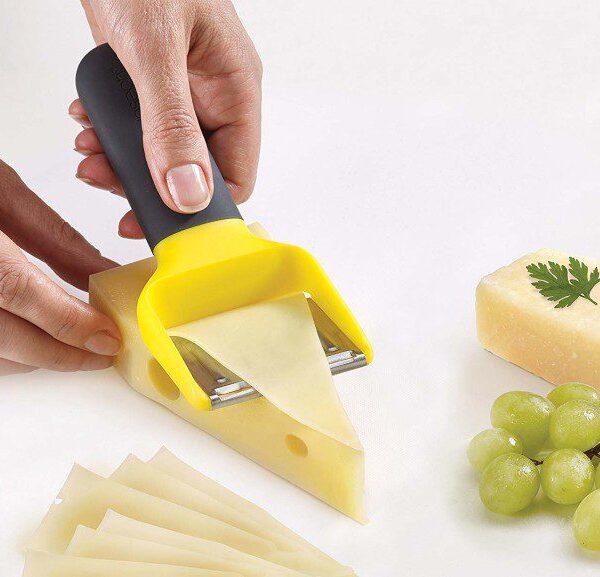 Slicing cheese should be satisfying?not sticky or uneven. With the multi-slice cheese plane from Joseph Joseph, you can handle both soft and hard cheeses with ease. This dual-blade tool includes one broad stainless-steel blade for smooth slicing of medium cheeses like cheddar, and a finer blade designed to shave hard cheeses such as parmesan.